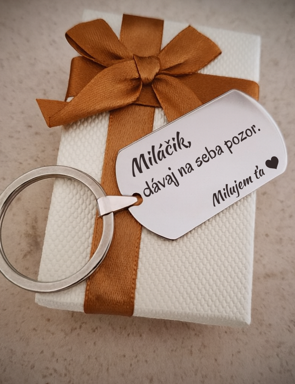 Elegantný nerezový prívesok na kľúče s možnosťou osobného gravírovania. Tento štýlový doplnok je vyrobený z chirurgickej ocele a dodáva sa v luxusnej darčekovej krabičke. S rozmermi 50x27x2mm. Je ideálnym spoločníkom pre každodenné použitie alebo ako výnimočný dar pre vašich blízkych. Okrem štandardného gravírovania ponúkame aj možnosť vlastného loga. Osobnosť do každého detailu. Buďte originálni so štýlovým príveskom na kľúče z našej ponuky.