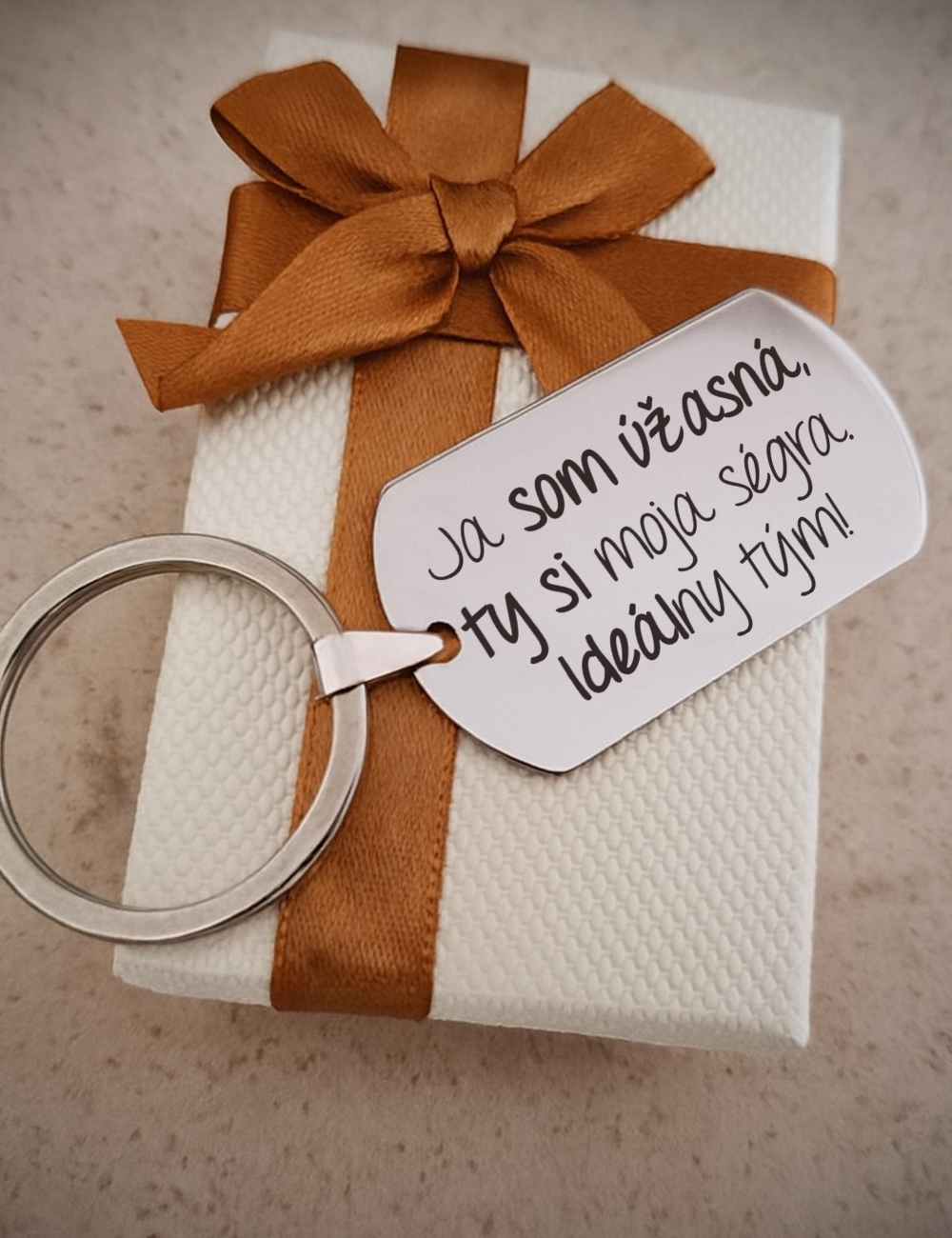 Elegantný nerezový prívesok na kľúče s možnosťou osobného gravírovania. Tento štýlový doplnok je vyrobený z chirurgickej ocele a dodáva sa v luxusnej darčekovej krabičke. S rozmermi 50x27x2mm. Je ideálnym spoločníkom pre každodenné použitie alebo ako výnimočný dar pre vašich blízkych. Okrem štandardného gravírovania ponúkame aj možnosť vlastného loga. Osobnosť do každého detailu. Buďte originálni so štýlovým príveskom na kľúče z našej ponuky.