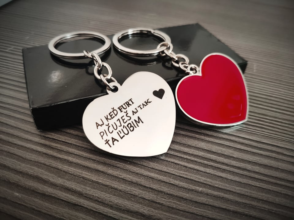 Elegantný kovový prívesok na kľúče v tvare srdiečka. Prívesok je z jednej strany v striebornej farbe a z druhej strany v červenej farbe. Tento sofistikovaný kľúčový prívesok nechá vyniknúť Vašu osobnosť. Prispôsobte si ho podľa vlastnej predstavy so špeciálnym gravírovaním, ktoré dodáva osobný dotyk. Prívesok je dodávaný v elegantnej darčekovej krabičke. Rozmery 42x87x3 mm zabezpečujú, že prívesok je dostatočne viditeľný a elegantný zároveň. Ak máte záujem o vlastné logo, neváhajte nás kontaktovať!